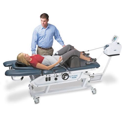 – Des sessions de traitement par une table de traction automatique (sous la surveillance d’une nurse) : traction lombaire afin de d’augmenter le diamètre du canal lombaire et d’augmenter la perfusion sanguine au niveau des disques et des nerfs,